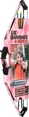 The Lil' Banshee Compound Set Is A 18 Pound Compound Bow Featuring An All New Soft Touch Grip, An Ambidextrous Reinforced Handle And Is Offered In An Eye Catching Color For The Beginner. The Set Includes A Multi-Color Target, 2 Target Arrows, Finger Tab, Arm Guard And An Adjustable Sight.